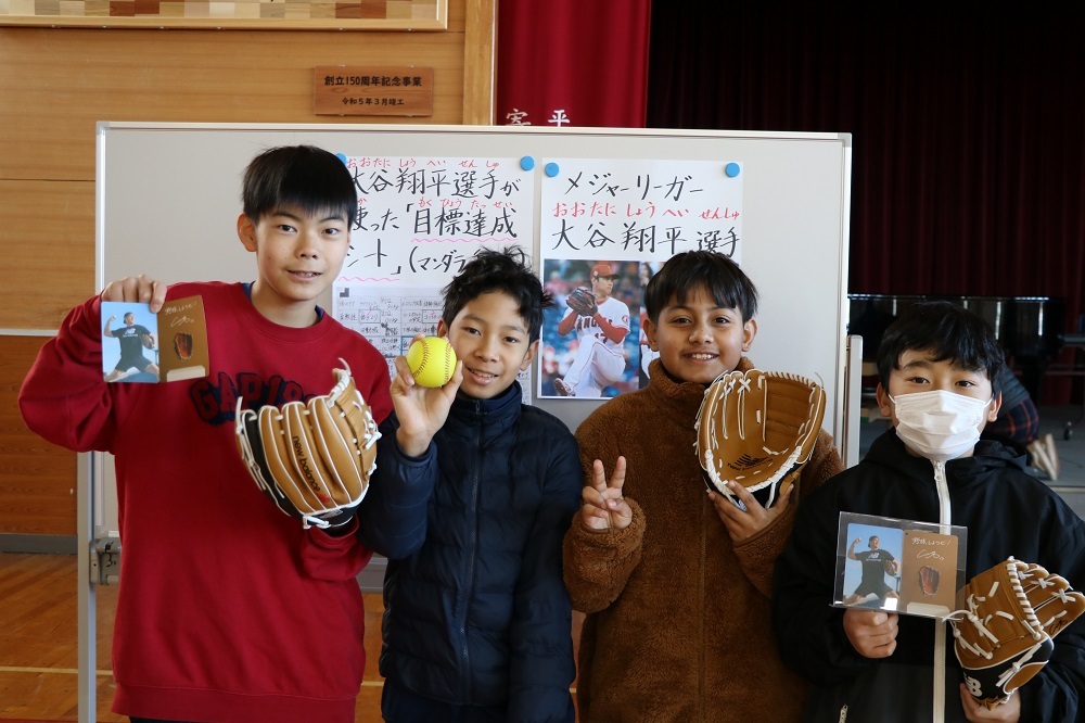 「野球しようぜ」町内小学校に大谷翔平(おおたに しょうへい)選手からのグローブが到着