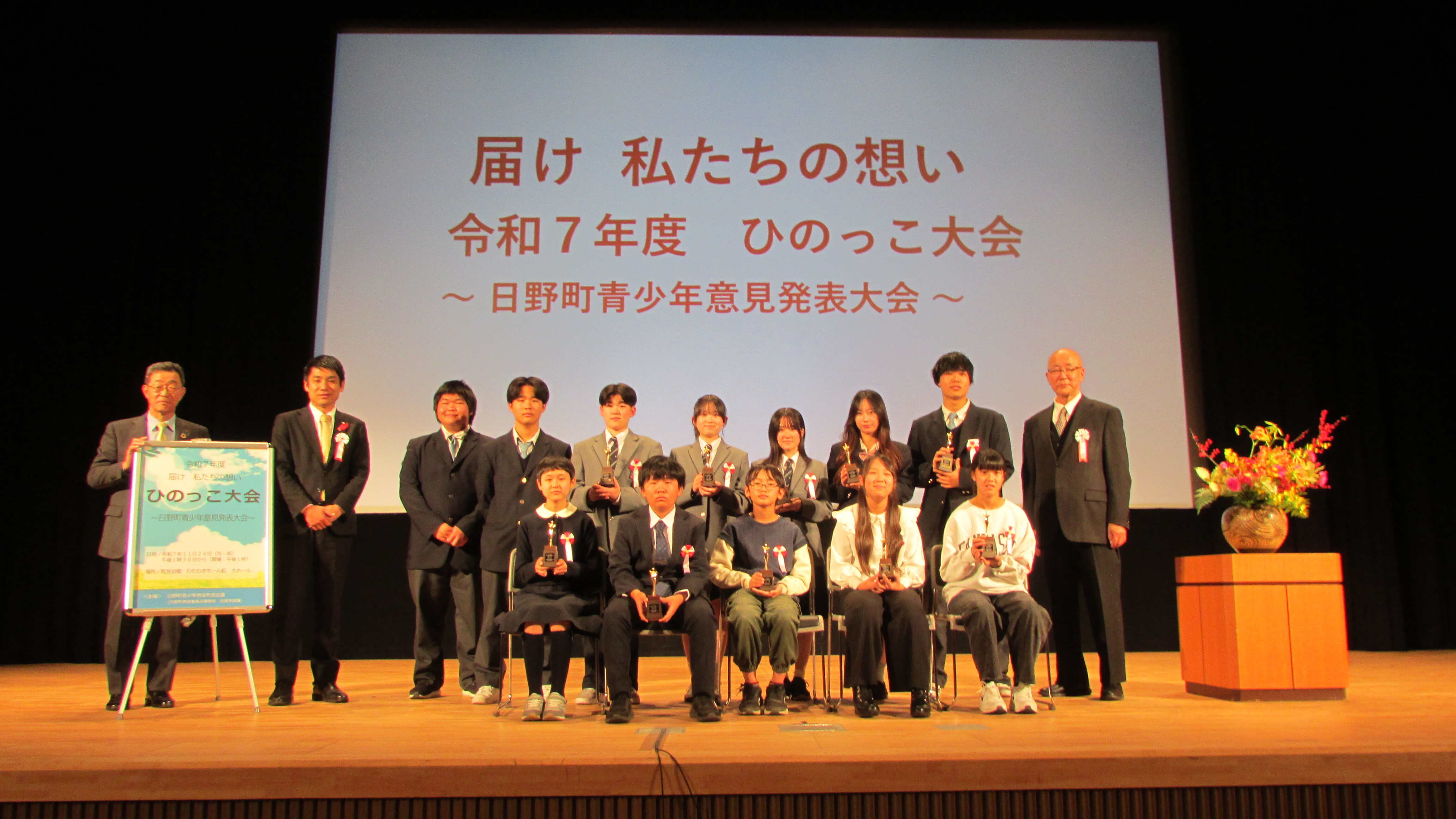 11月24日(月・祝)に、わたむきホール虹大ホールにて、令和7年度ひのっこ大会(日野町青少年意見発表大会)が開催されました。