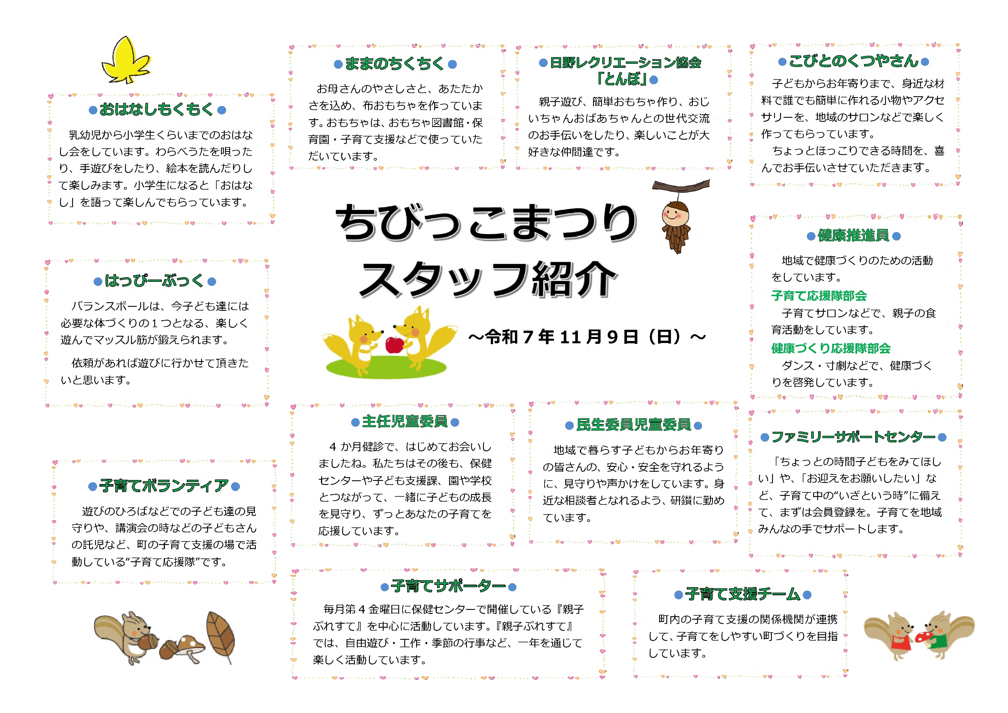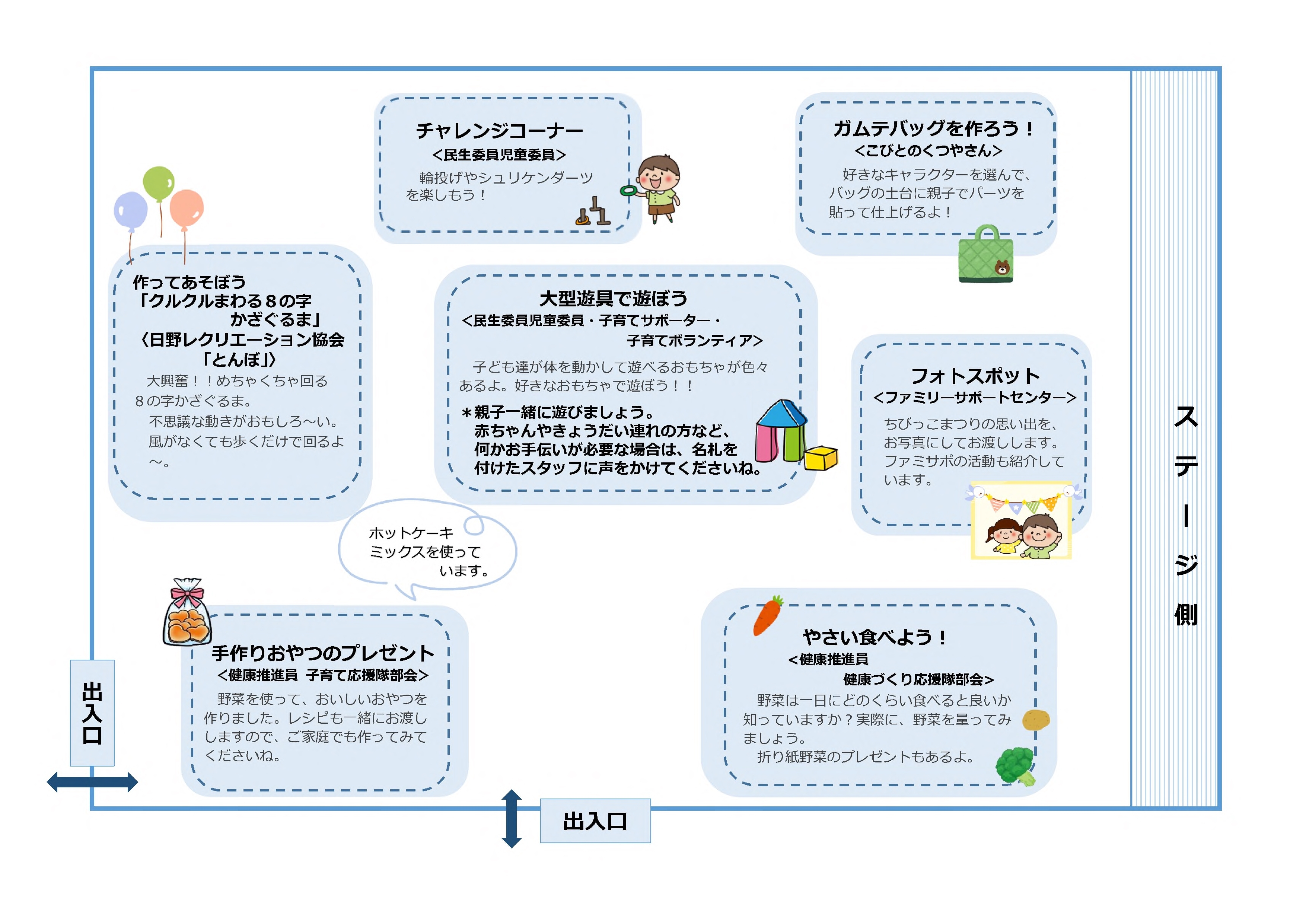 赤ちゃんから3歳くらいの子どもさんと保護者のかたが地域の人と交流しながら一緒に楽しめるおまつりです。