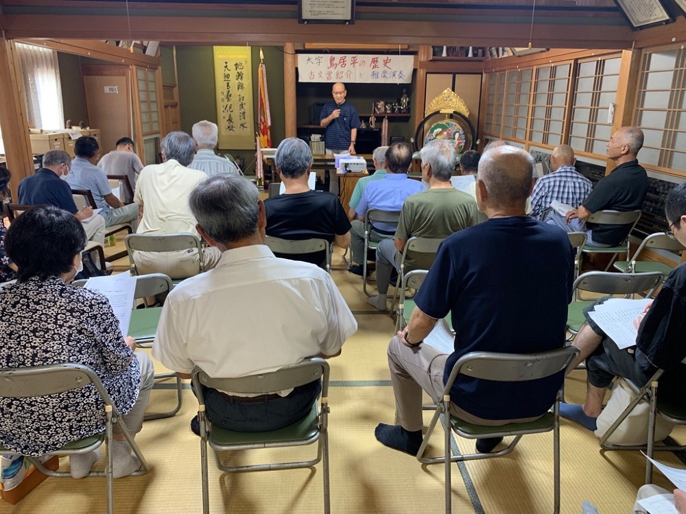 7月12日(土曜日)、鳥居平の会議所で歴史探訪「大字鳥居平の歴史、古文書紹介と雅楽演奏」が行われ、大字内外から42名の参加がありました。