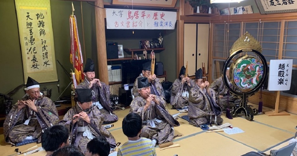 歴史探訪「大字鳥居平の歴史、古文書紹介と雅楽演奏」