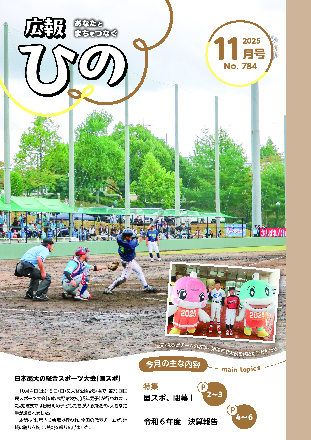10月4日(土曜日)・5日(日曜日)に大谷公園野球場で「第79回国民スポーツ大会」の軟式野球競技(成年男子)が行われました。始球式では日野町の子どもたちが大役を務め、大きな拍手が送られました。