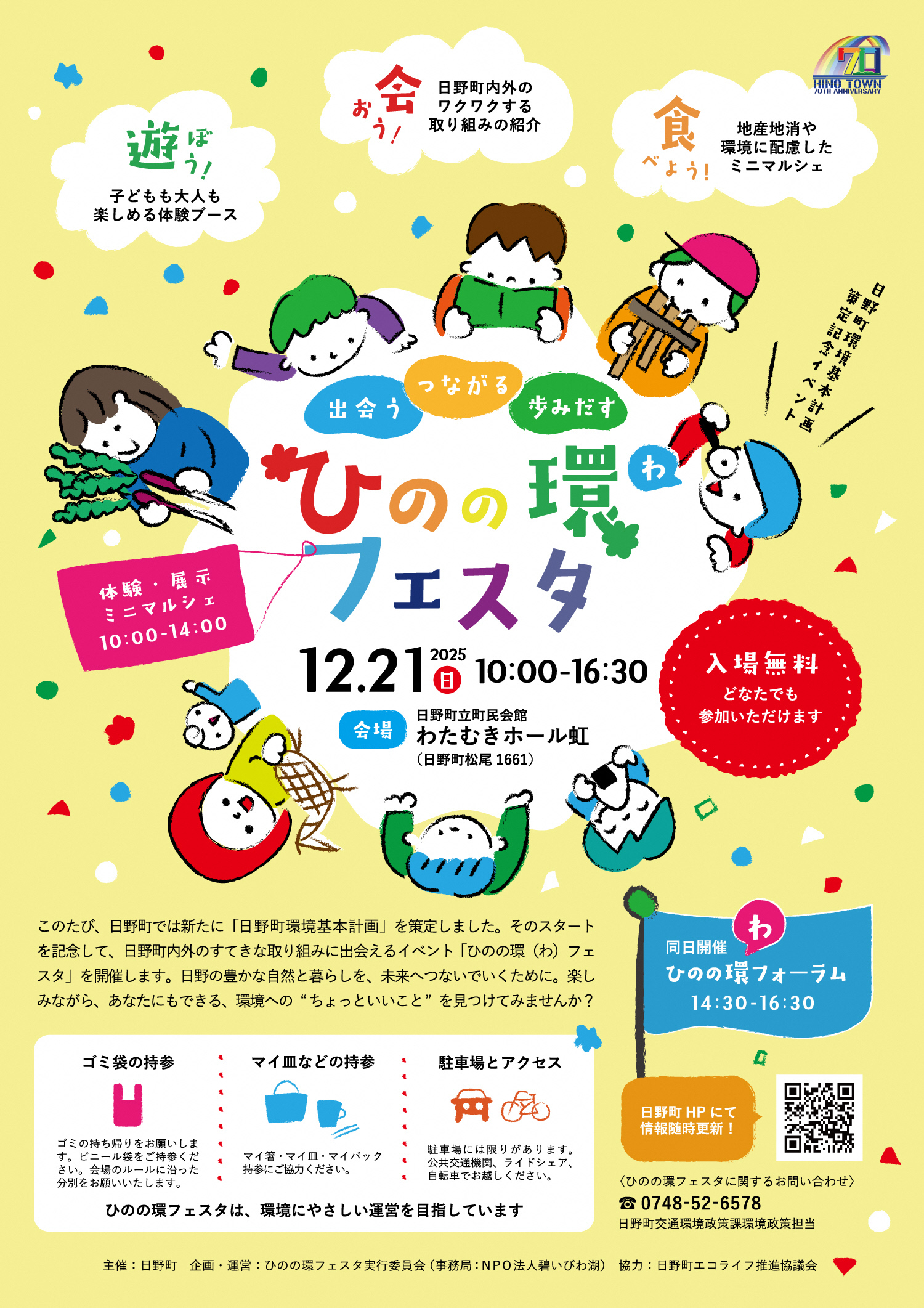 そのスタートを記念して、日野町内外のすてきな取り組みに出会えるイベント「ひのの環(わ)フェスタ」を開催します!