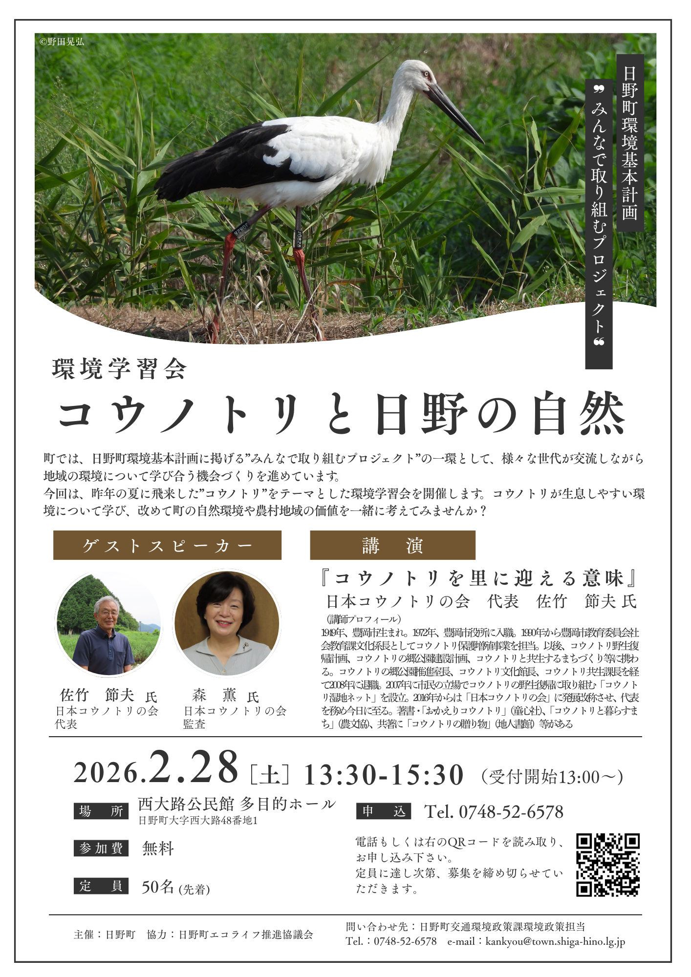 コウノトリが生息しやすい環境について学び、改めて町の自然環境や農村地域の価値を一緒に考えてみませんか?