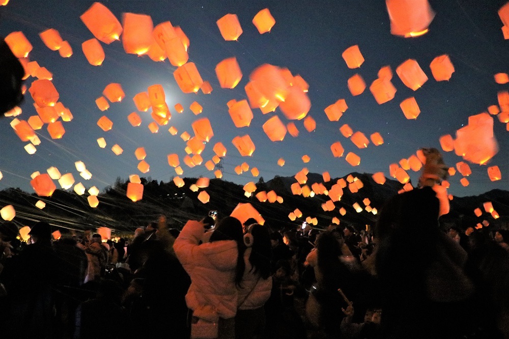 フィナーレでは、参加者がそれぞれの「想い」や「願い」を込めたスカイランタンを冬の夜空へと打ち上げ、会場は幻想的な光に包まれました。
