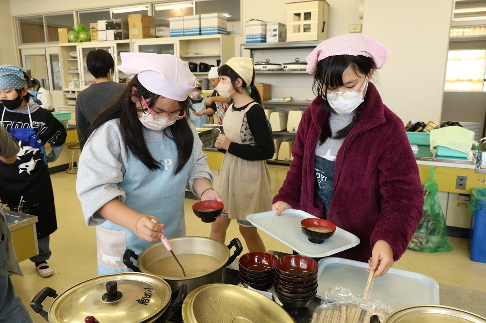 みんなと力を合わせて調理をする児童たち